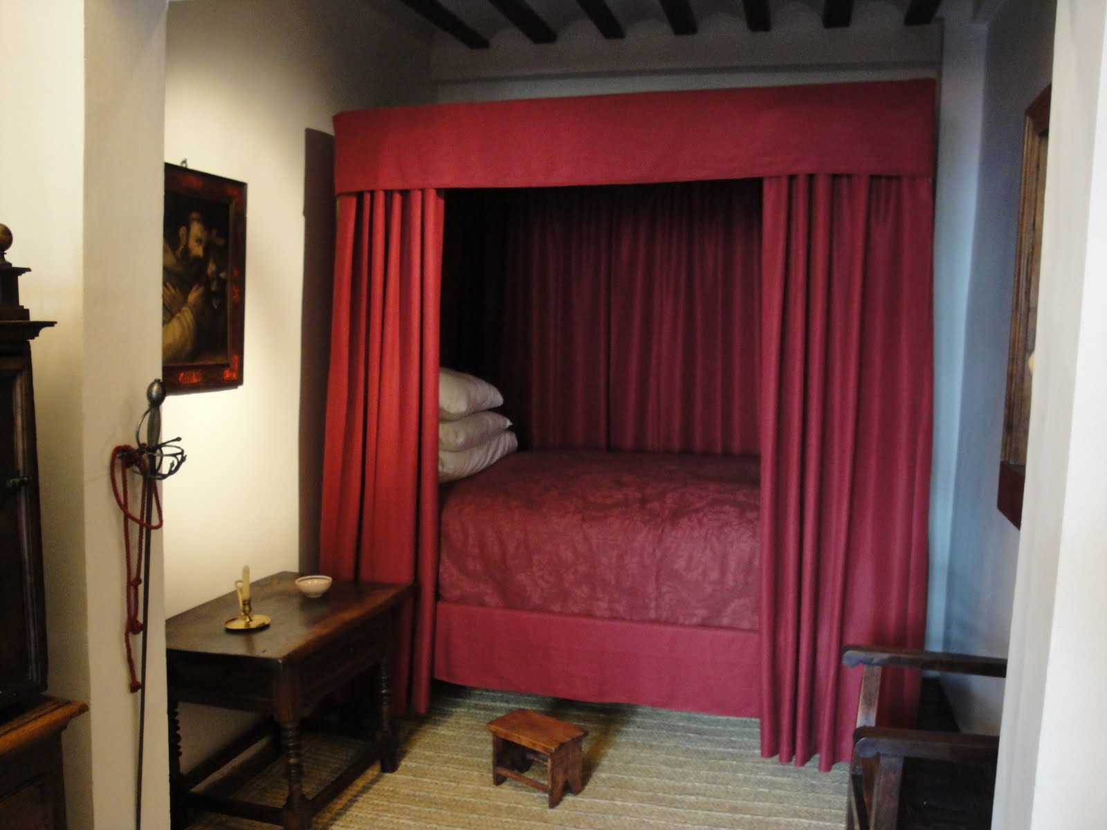 Dormitorio de la casa de Cervantes en Valladolid, cuyo edificio acaba de adquirir S.M. el Rey Don Alfonso XIII, para convertirlo en museo cervantino". Foto Santos Peña