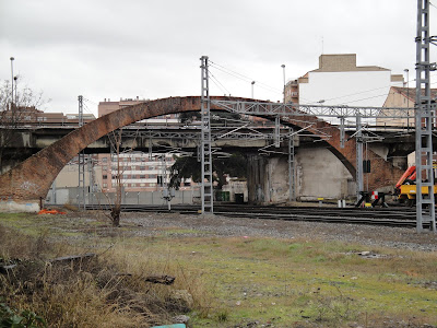 Salva todo el espacio de las vías trazando un arco escarzano de 23 m de luz, más tendido en el trasdós, para unirse a los estribos. Hay que destacar la limpieza de la forma, fundiendo arco y contrafuertes. Todo él está construido con ladrillos macizos, dispuestos en hiladas transversales, salvo en los estribos, donde son horizontales. La base de los estribos es, en parte, de mampostería careada. Su cara superior está enfoscada, probablemente para mejorar su impermeabilidad.