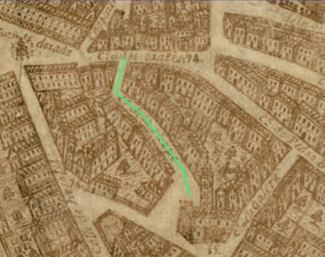 | La calle Sierpe según el plano de Bentura Seco de 1738 |