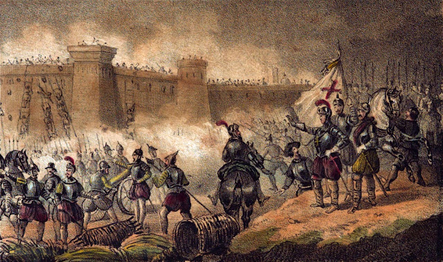 «En el combate que dieron los caballeros en Tordesillas contra los vuestros, vi con mis propios ojos a un vuestro clérigo derrocar a once hombres con una escopeta detrás de una almena; y el donaire era que al tiempo que asestaba para tirárles, los santiguaba con la escopeta y los mataba con la pelota.»